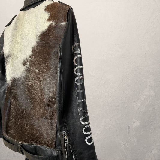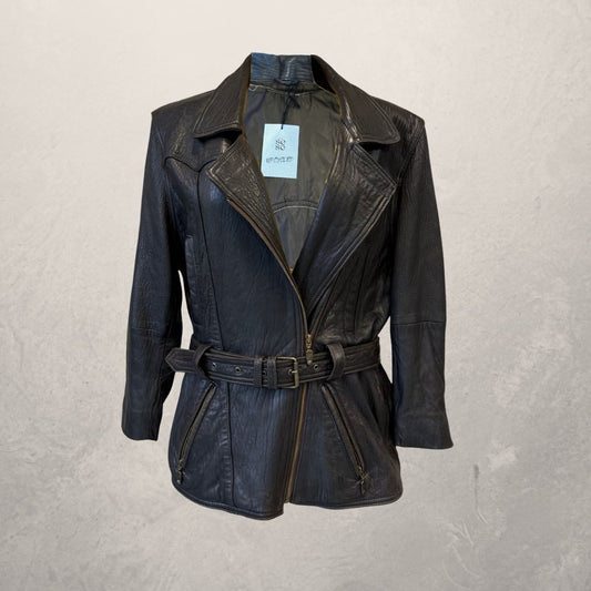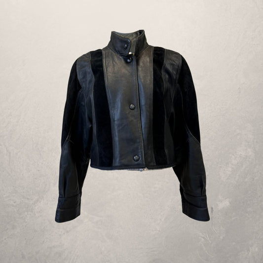 Vintage black leather + rings UPCYCLED jacket short M - by SESE