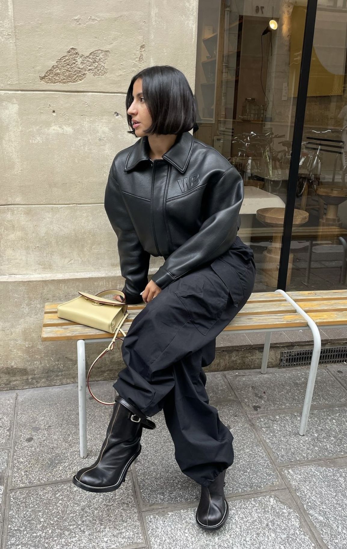 VIntage Goosecraft black leather + cow skin UPCYCLED jacket S- by SESE