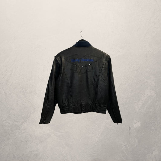 Vintage Harley Davidson blue/black leather letterman jacket L