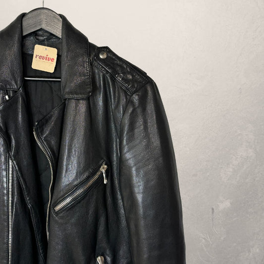 Balmain black leather biker jacket M
