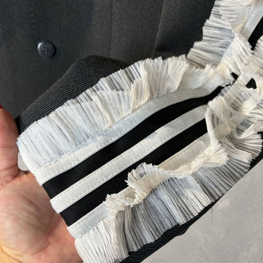 Vintage dark grey 3 stripe & ruffle sleeve blazer OS- by Holy Disco