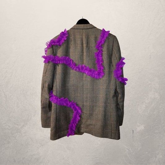 Vintage brown plaid with purple ruffles blazer OS- by Holy Disco