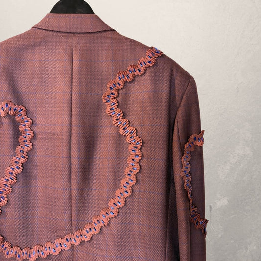 Vintage maroon checkered with ruffles blazer OS- by Holy Disco