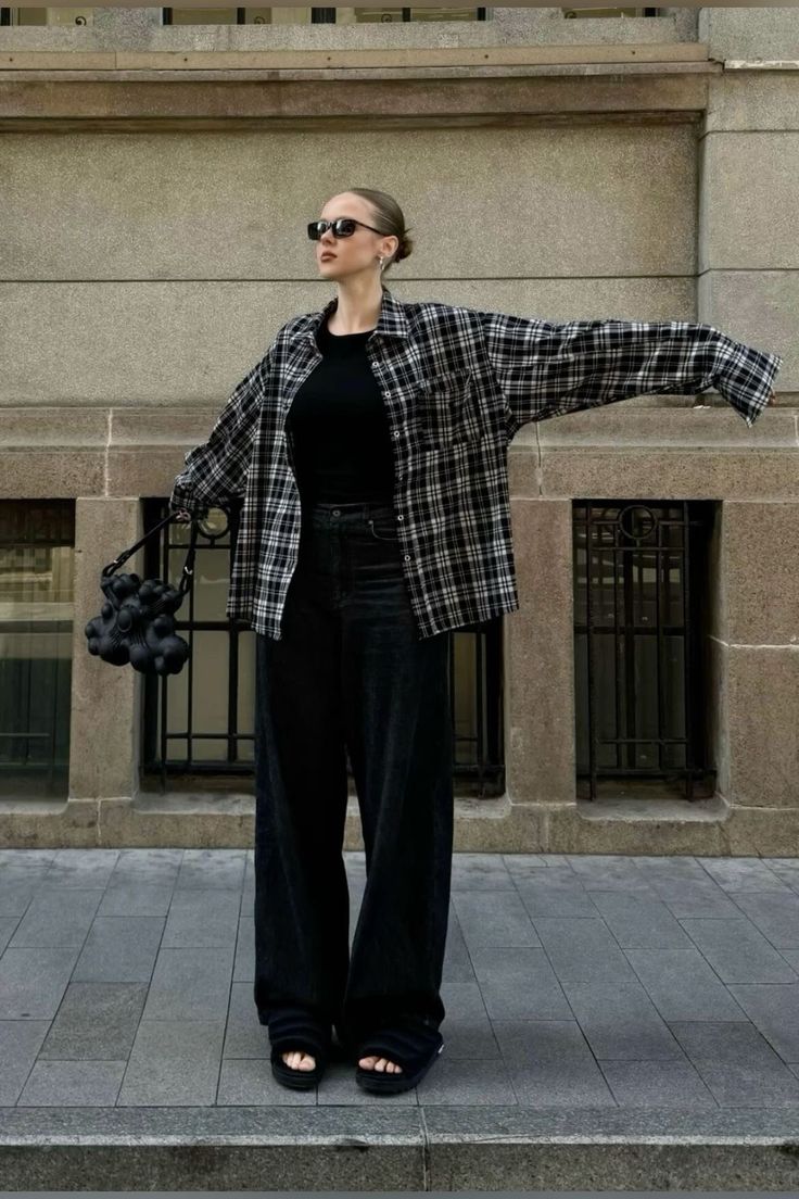 Saint Laurent Paris black/grey checkered shirt M