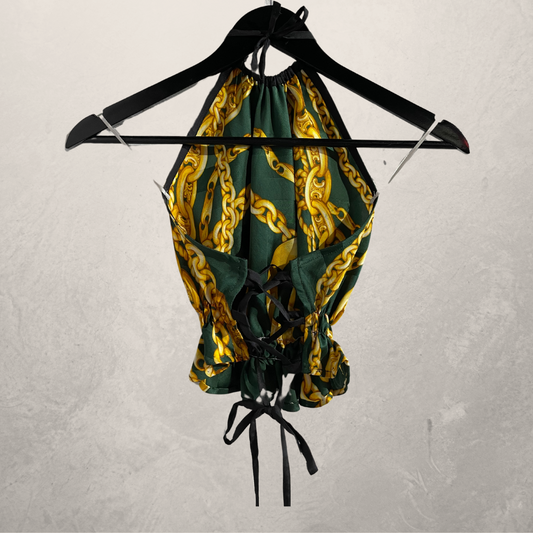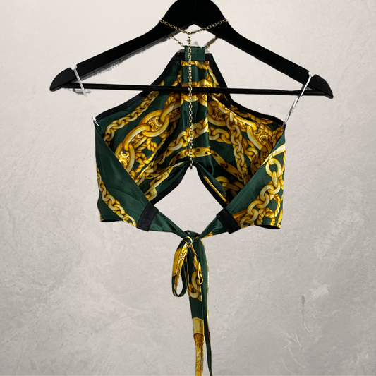 "CELINE" green gold 100% silk chain halter top M/L- by @Home_is_a_Runway
