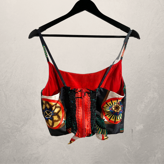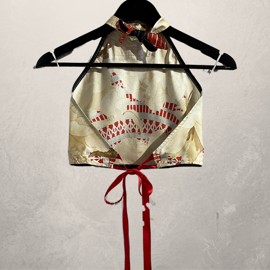 "Hermes" red 100% silk halter top M/L- by @Home_is_a_Runway