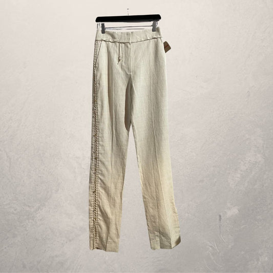 Jacquemus beige "Le Raphia" hi waist 100% linen embroidered trousers 34/36
