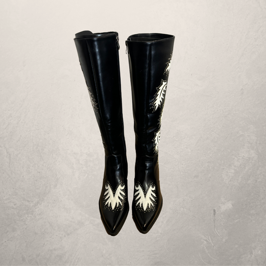 Vintage black leather tall cowboy boots 40
