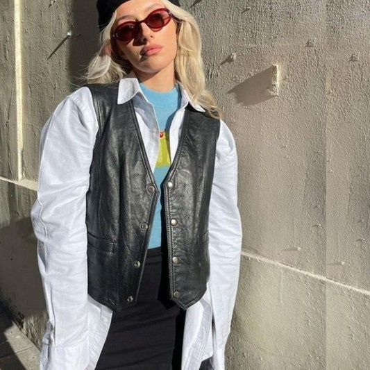 VINTAGE black leather vest SIZE MEDIUM