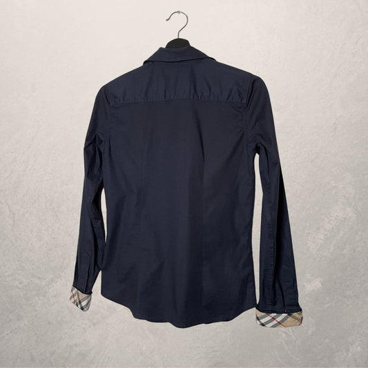 VINTAGE BURBERRY navy fitted poplin shirt SIZE M