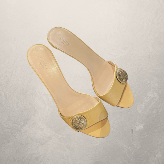 Vintage Gucci yellow patent gold hardwear Mules 39.5