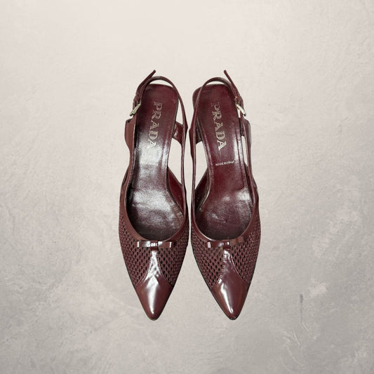 Vintage Prada burgundy mesh kitten heels 38.5 w/ box