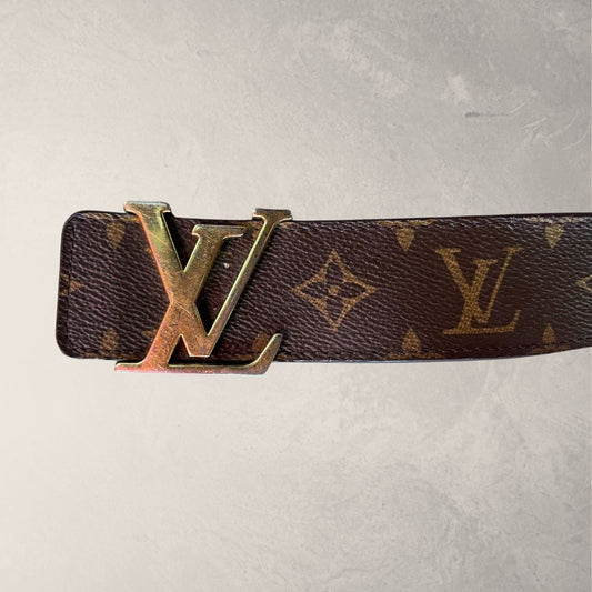 Louis Vuitton brown leather gold monogram belt 98cm