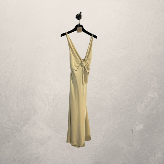 Vintage Prada beige silk dress gold embellishment 36
