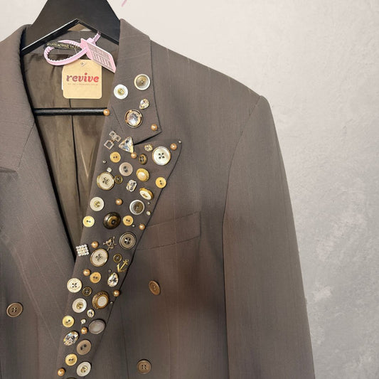 Vintage dark grey 3 stripe & ruffle sleeve blazer OS- by Holy Disco