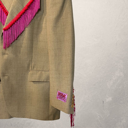 Vintage beige/ pink fringe and red trim blazer OS- By Holy DiscoVendor:Holy DiscoRegular price €199,00 EURRegular priceUnit price per-