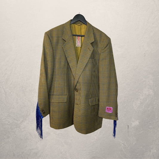 Vintage brown with blue check/ blue glitter fringe blazer OS- By Holy DiscoVendor:Holy DiscoRegular price €199,00 EURRegular priceUnit price per-