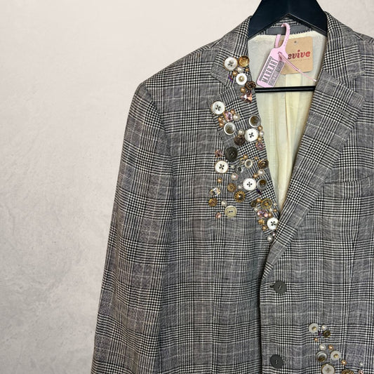 Vintage Beige with a checkered pattern blazer OS- By MARRART