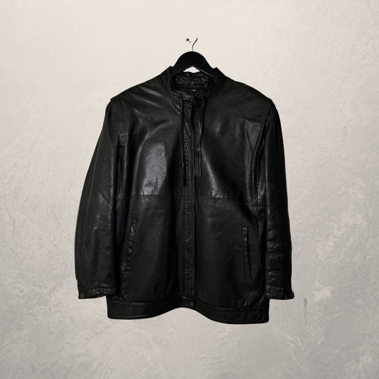 Vintage zwarte leren kwastjesjas L