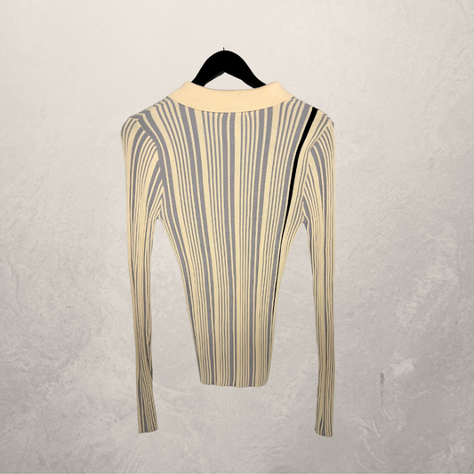 Goede Amerikaanse streep witte gebreide top met lange mouwen XS