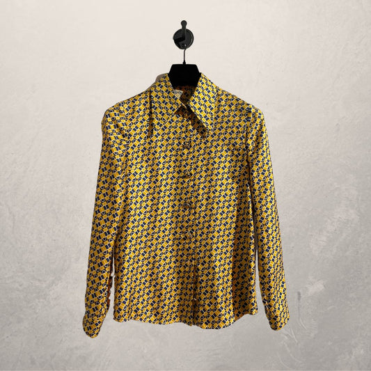 UitverkochtGucci gele 100% zijden blouse met patroon 38