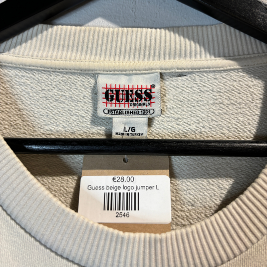 UitverkochtBeige logo trui van Guess L