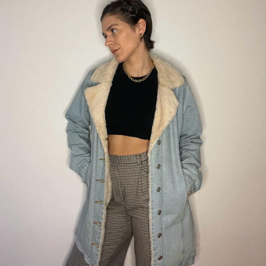 UitverkochtHONEY PUNCH lichtblauw lang denim jas MAAT LARGE