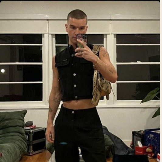 UitverkochtI LOVE H81 zwart vervaagd denim vest MAAT GROOT