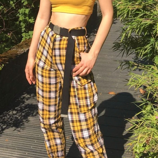 UitverkochtI AM GIA gele geruite cargobroek MAAT XS