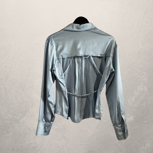Jacquemus blauw/grijze "Le Splash" satijnachtige blouse S