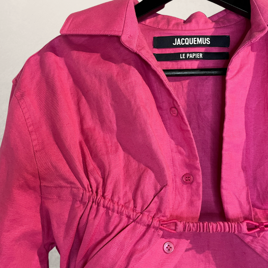 UitverkochtJACQUEMUS La Papier roze linnen crop top XS