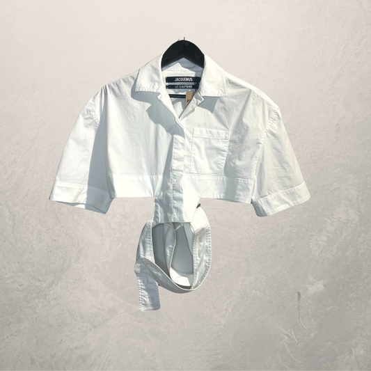 Jacquemus wit "les sculptures" cropped wikkelshirt S/M