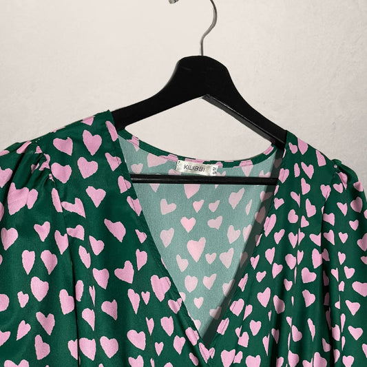 KILIBBI groen met roze hartjes wikkeljurk MAAT SMALL