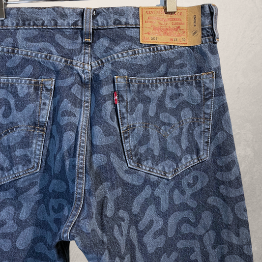 Levi's 501 blauwe patroon bedrukte denim jeans 33 x 32