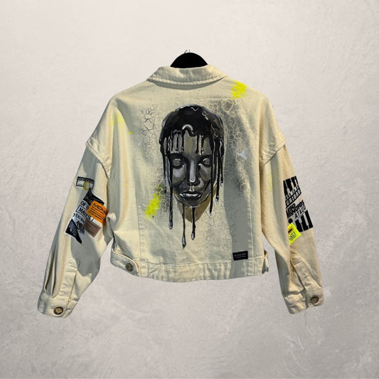 Lichtgeel denim jasje met patches, medium - van Marrart