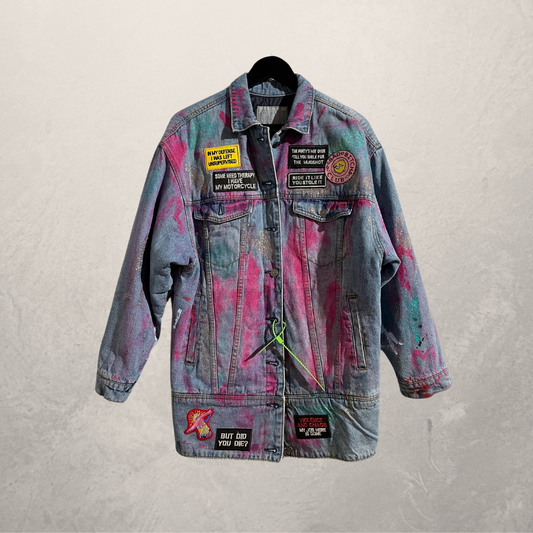 Lichtblauw gewatteerd "When life gives you lemons add Vodka" denim jack L - Door @Marrart