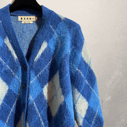 Marni blauw geruite print lange mouw v-hals vest M/L