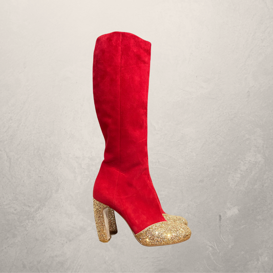 Miu Miu rode fluwelen glitter teen kniehoge laarzen 42