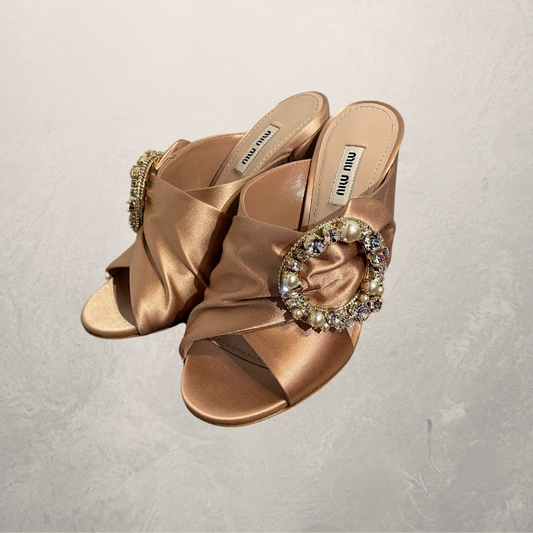 UitverkochtMiu Miu zachtroze satijnen muiltjes 36,5
