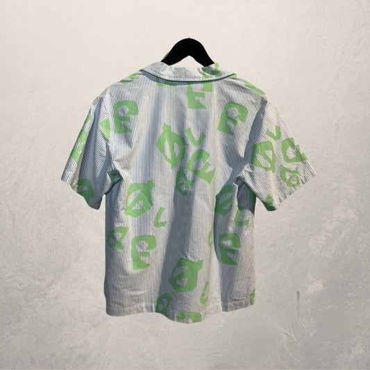OLAF 100% katoenen blauwe krijtstreep blouse met groene print XS