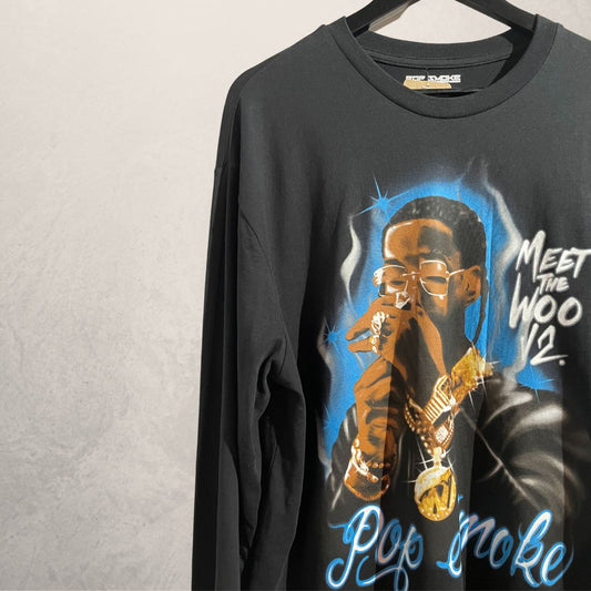 UitverkochtPop Smoke zwart LS grafisch t-shirt L
