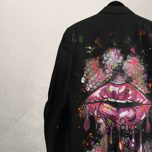 Zwarte boyfriend blazer met rode lippen OS - Door @Marrart