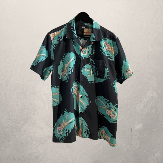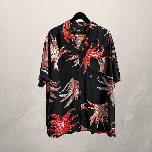 UitverkochtStussy zwart gebloemd grafisch shirt XL