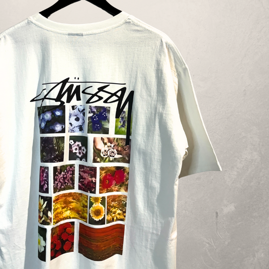 Stussy wit bloemen regenboog planten grafisch t-shirt L