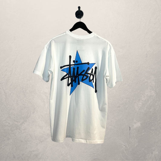 UitverkochtStussy wit blauw bloemen grafisch t-shirt L