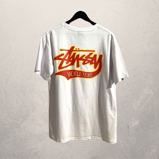 UitverkochtStussy wit grafisch geel schrijven t-shirt L