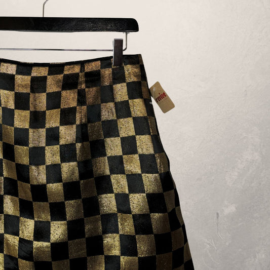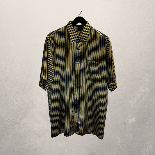 Vintage zwart goud gestreept overhemd met korte mouwen M
