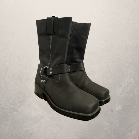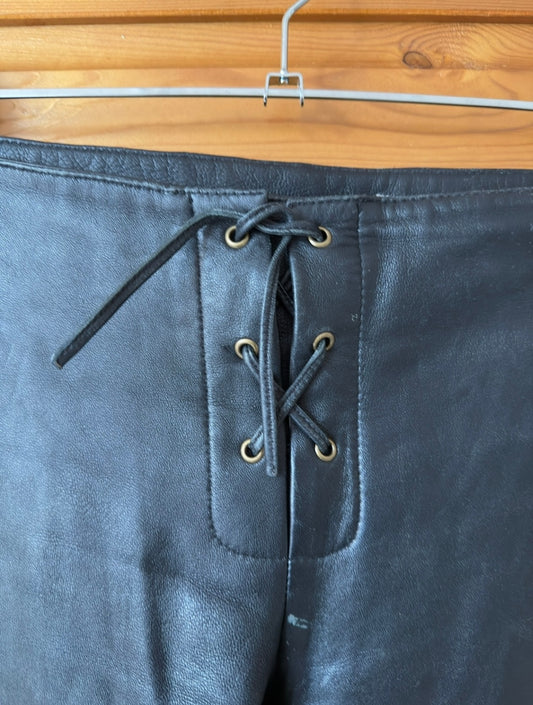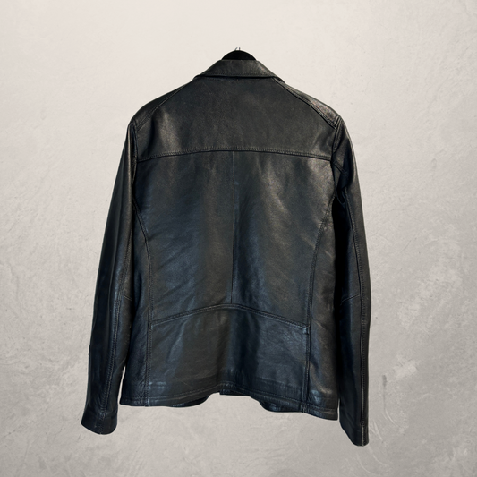 UitverkochtVintage zwarte leren zilveren rits leren jas L