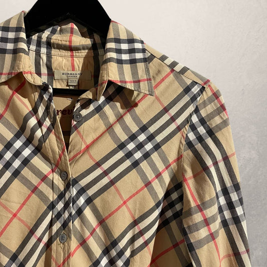 Vintage Burberry beige geruit getailleerd overhemd XS