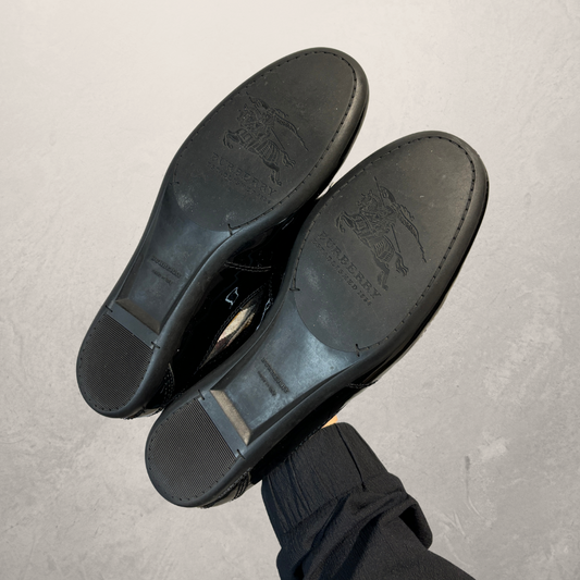 Vintage Burberry zwarte patent tartan loafer sneakers 40 - Door Selectedwithlove.nl